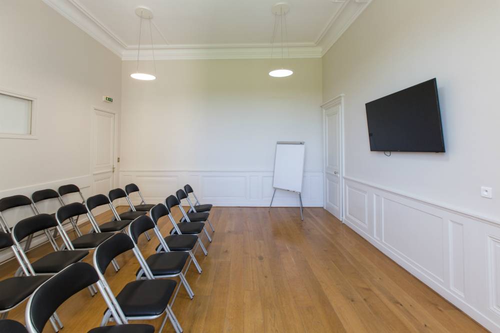 L'Orangerie est totalement équipée avec un grand écran mural, un vidéoprojecteur, la sonorisation avec 2 micros main HF, un espace scénique et un routeur 5G.