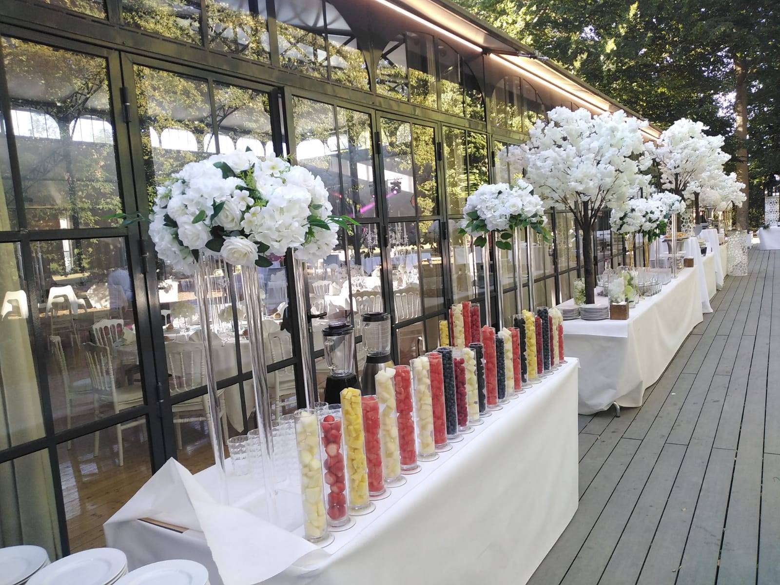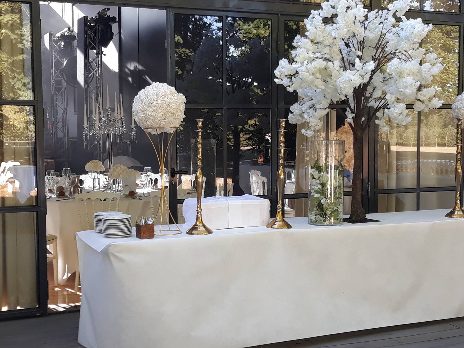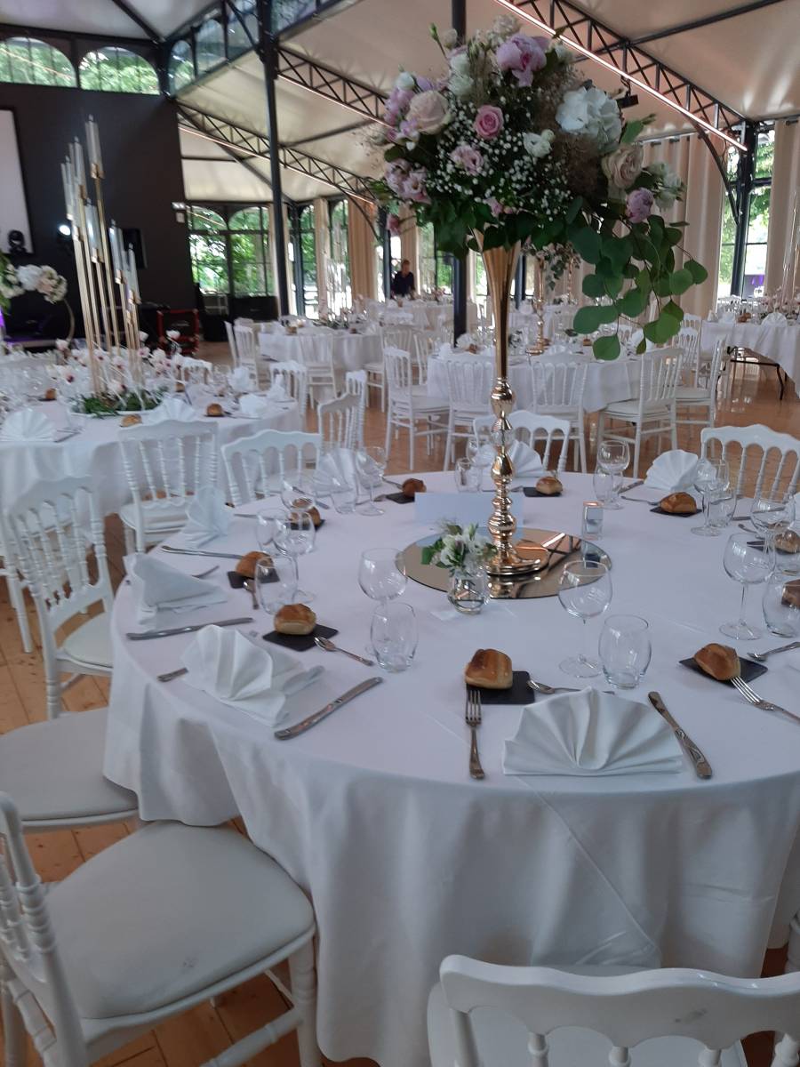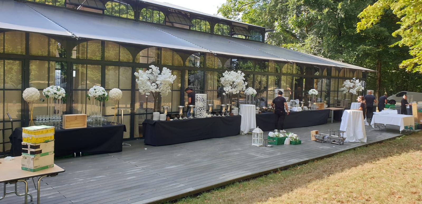 L'Orangerie et ses 450 m² tout de métal et de verre permet d'accueillir près de 300 personnes en repas assis. Sa terrasse, ou en cas de mauvais temps, les salons de réceptions du château permettent d'organiser des buffets sublimes.