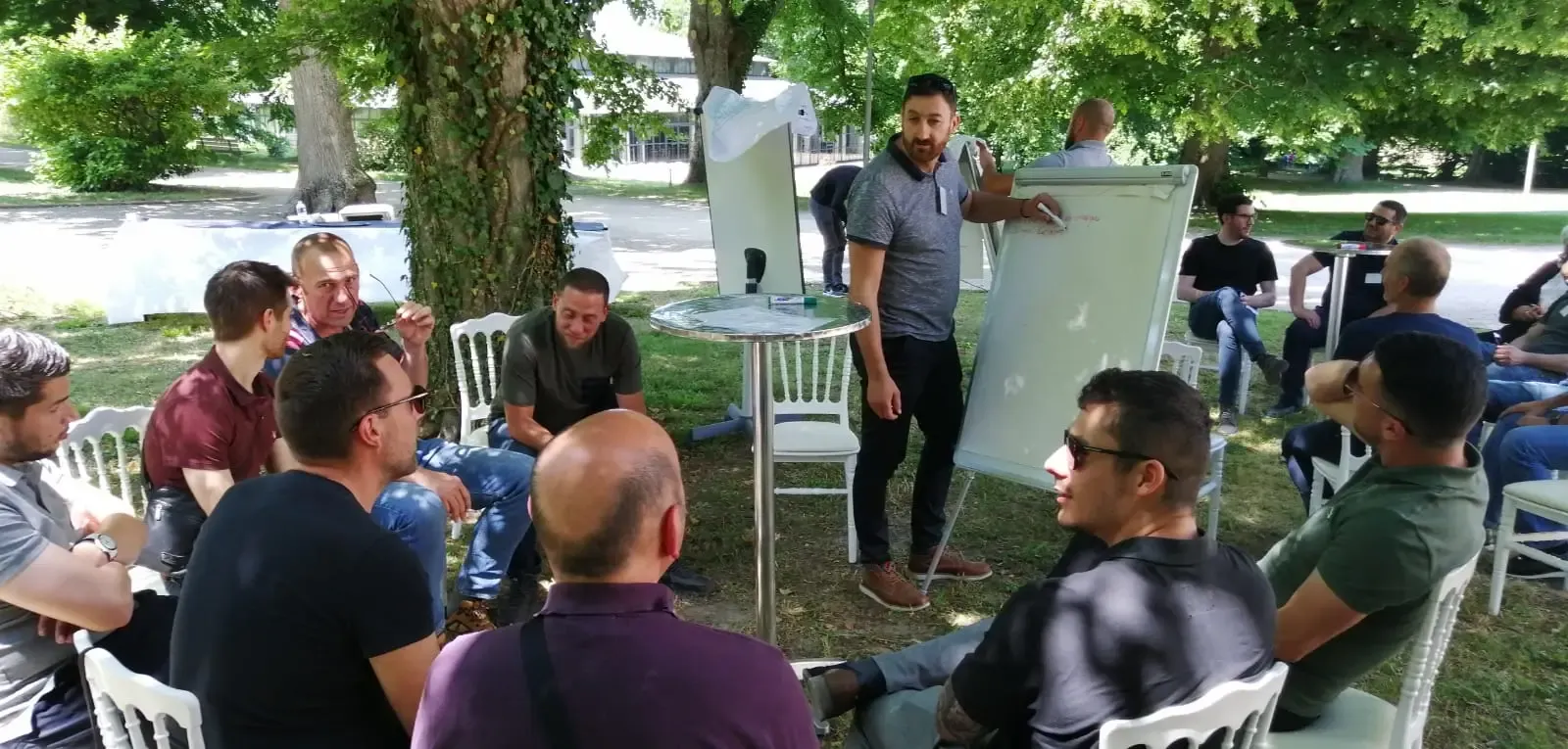 Au programme du séminaire : Des ateliers de groupes au château dans la salle Auguste et Louis Lumière le matin, suivis d’une garden party proposée par l’un de nos traiteurs partenaires et pour finir un brainstorming à la fraîche sous les arbres du domaine de Rajat.
