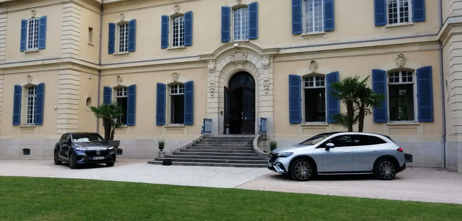 Accueil d’un road trip avec véhicules d’essais pour un parcours entre Lyon et la Suisse dans le cadre exceptionnel du château de Rajat